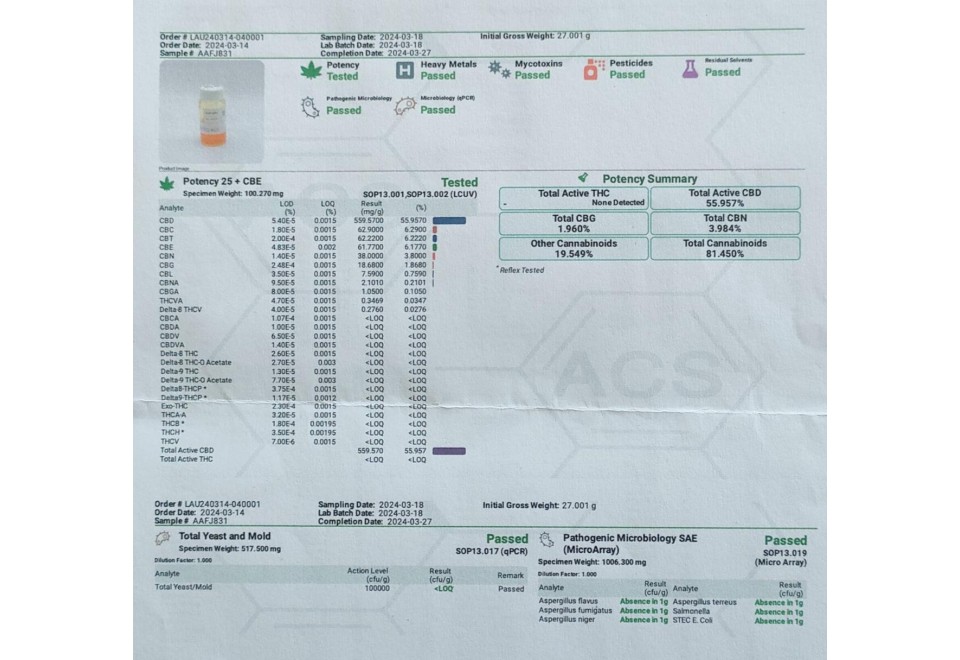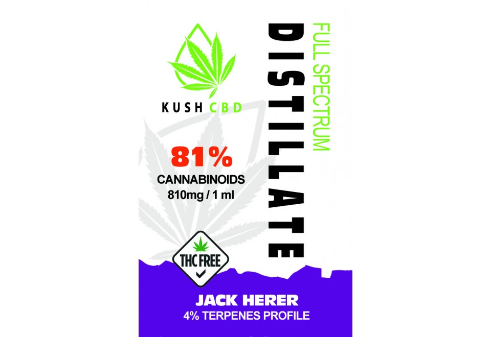 Цей дистилят містить 81% канабідіолу (CBD) та канабінолу (CBN), а також канабігералу (CBG), пропонуючи потужний ефект повного спектру. Виготовлений з високоякісних сортів коноплі, продукт має унікальний аромат та смак JACK HERER.