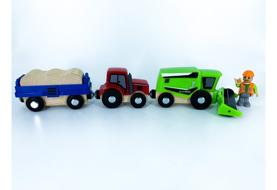 Теги: Набір машинок для дерев'яної залізниці PlayTive Ikea Brio (Комбайн, трактор з причепом)