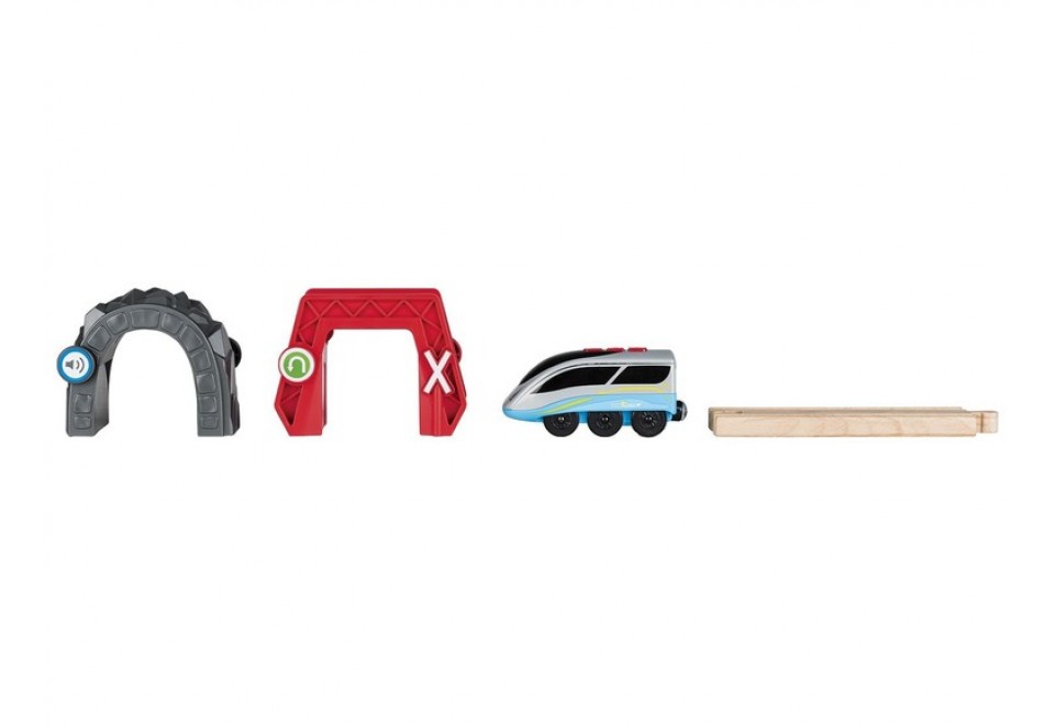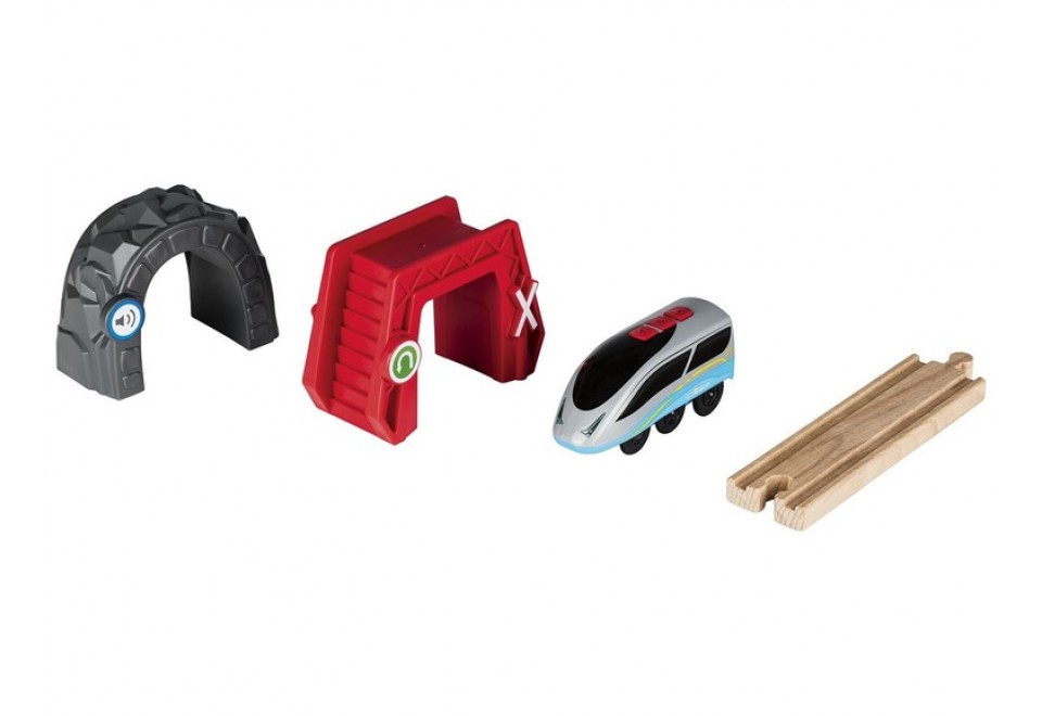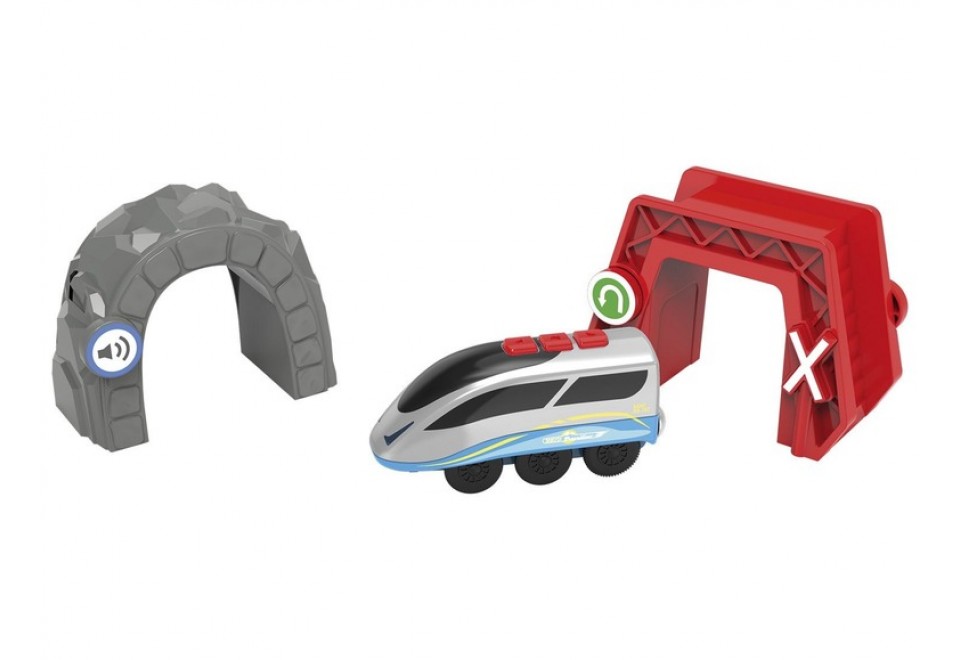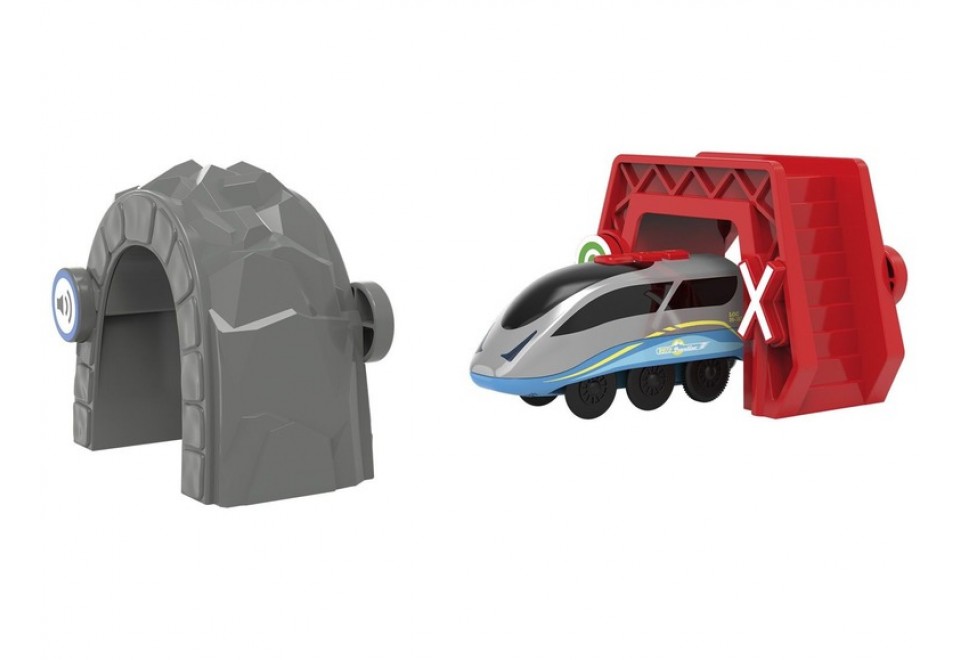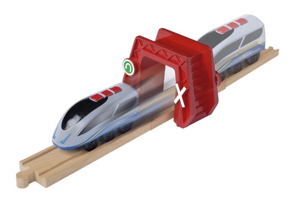 Набір з двох інтерактивних арок для залізниці від німецького виробника Playtive є елементом для автоматизації вашого поїзда. Перша арка, пофарбована в червоний колір, відразу попередить про своєму основному завданню додатковими знаками, передбаченими на поверхні з боку руху складу - заборона в'їзду. Причому інтерактивний продукт не просто попередить, а й забезпечить виконання поїздом вказівки за рахунок зміни напрямку його руху.